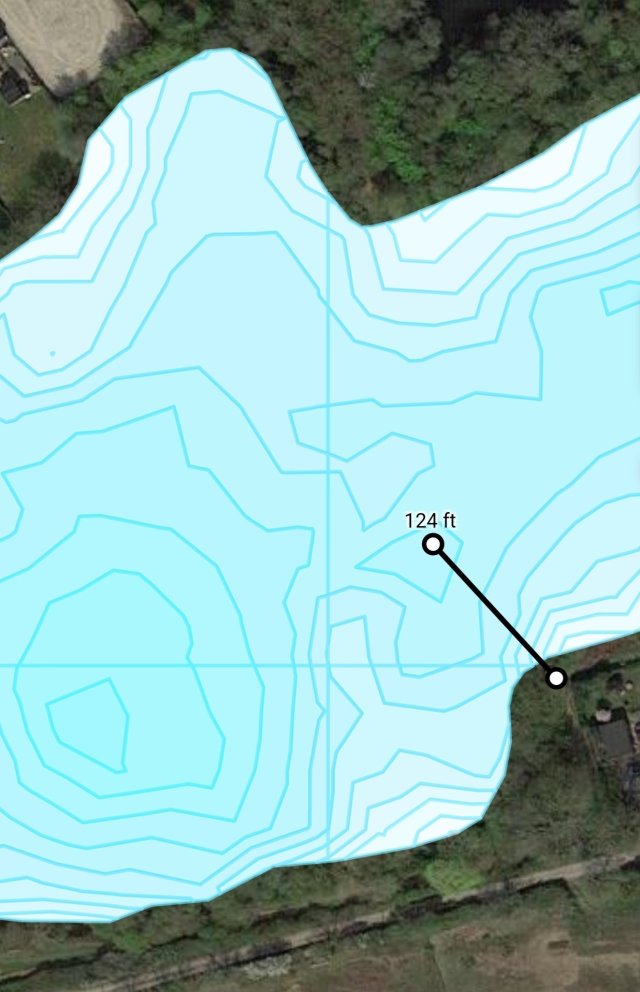 - If you would like to know the distance from the bank, tap on the ruler icon and then tap the two points you wish to measure.