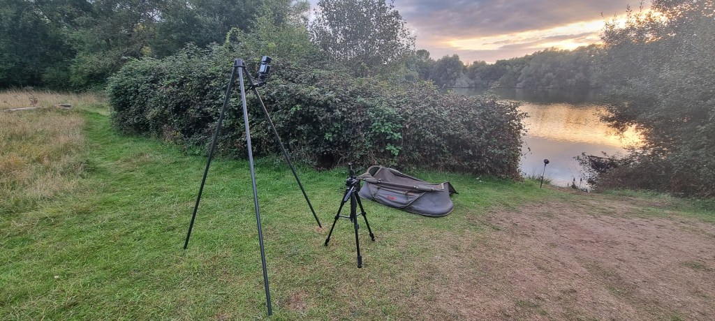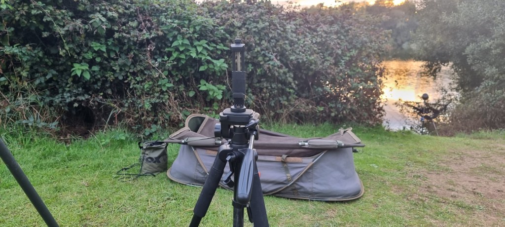 The tripod is positioned to achieve the best light angle and I simply move it over the unhooking mat to weigh the fish.